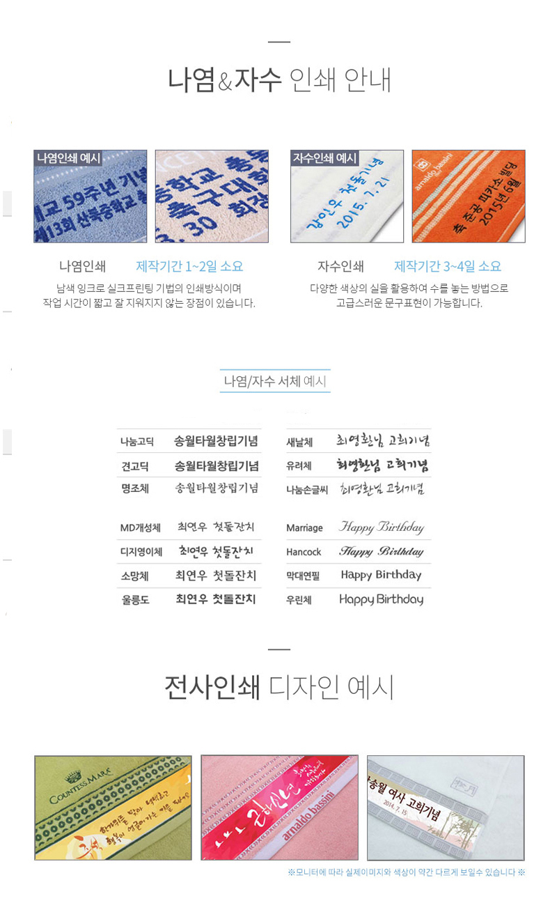 실크인쇄 / 컬러인쇄 / 레이저인쇄 / 박인쇄 / 자수인쇄 / 에폭시인쇄