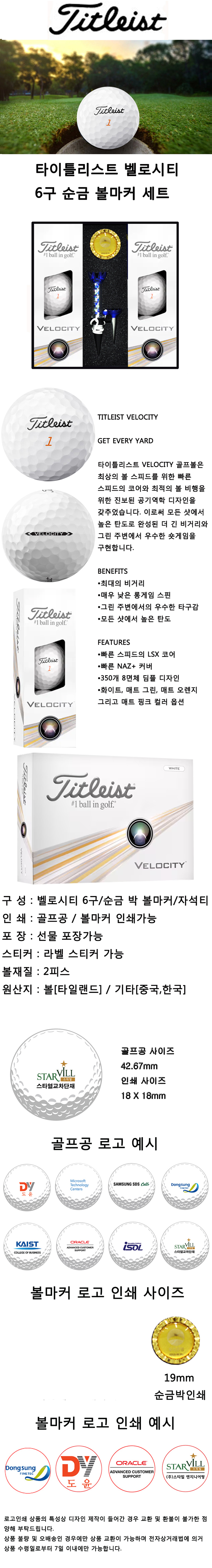 타이틀리스트 벨로시티 6구 순금 볼마커 자석티세트