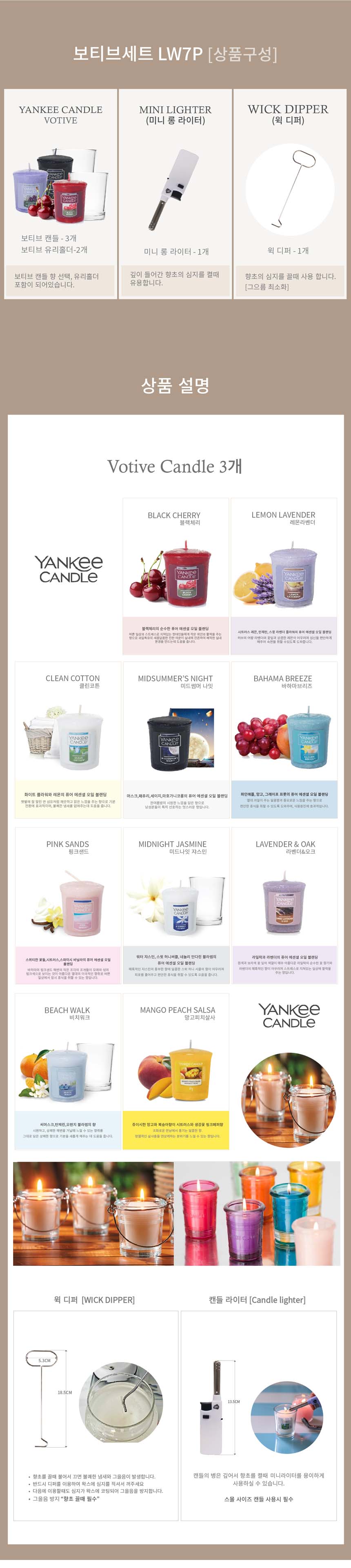 양키캔들 보티브3개,유리홀더2개,캔들라이터1개,윅디퍼(초끌때),상자포함