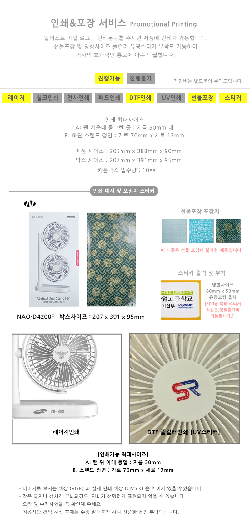 인쇄위치 : 팬 앞 뒤 둥근부분 or 스탠드 정면