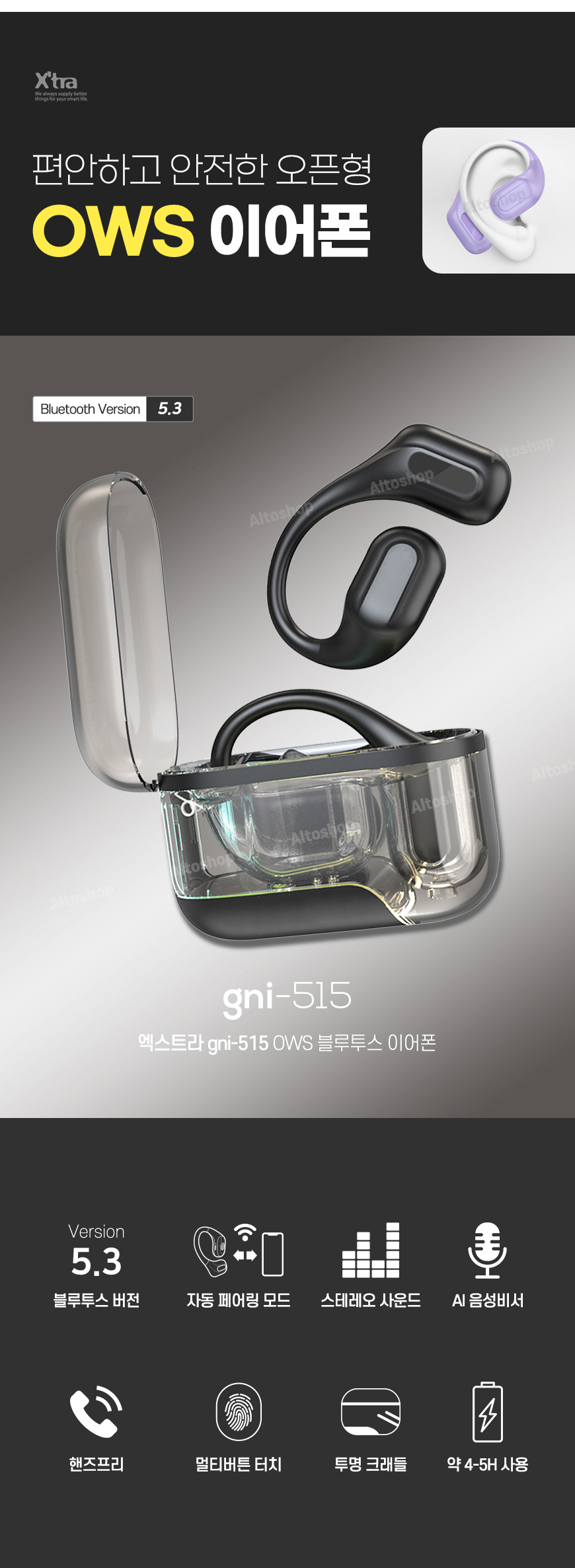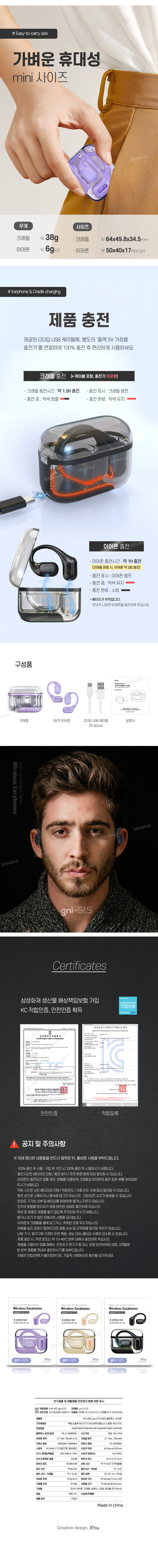 적합인증번호 : R-R-AlT-gni-515 (모델명 : gni-515) | 안전인증번호 : XU102408-20001C (이어폰 모델명 : HCY401012X) (크래들 모델명