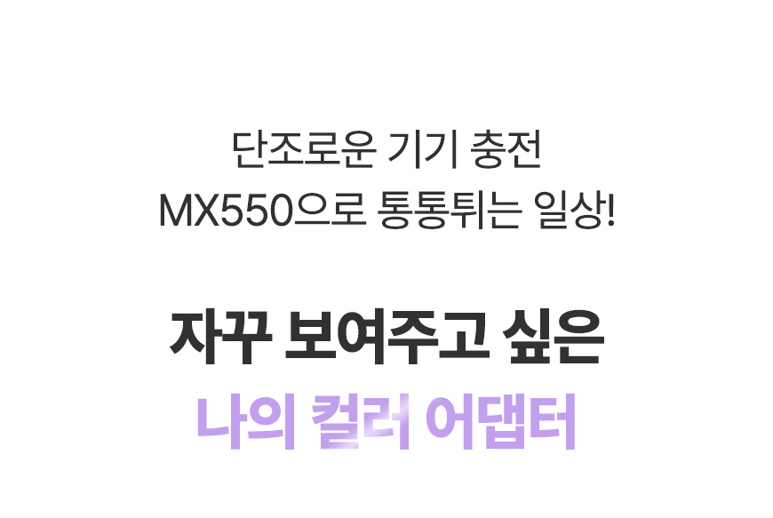- 투박하고 못생긴 검정 흰색 충전기는 이제 지겨워!!! 비비드한 컬러의 드러내고 싶은 충전기 MX550