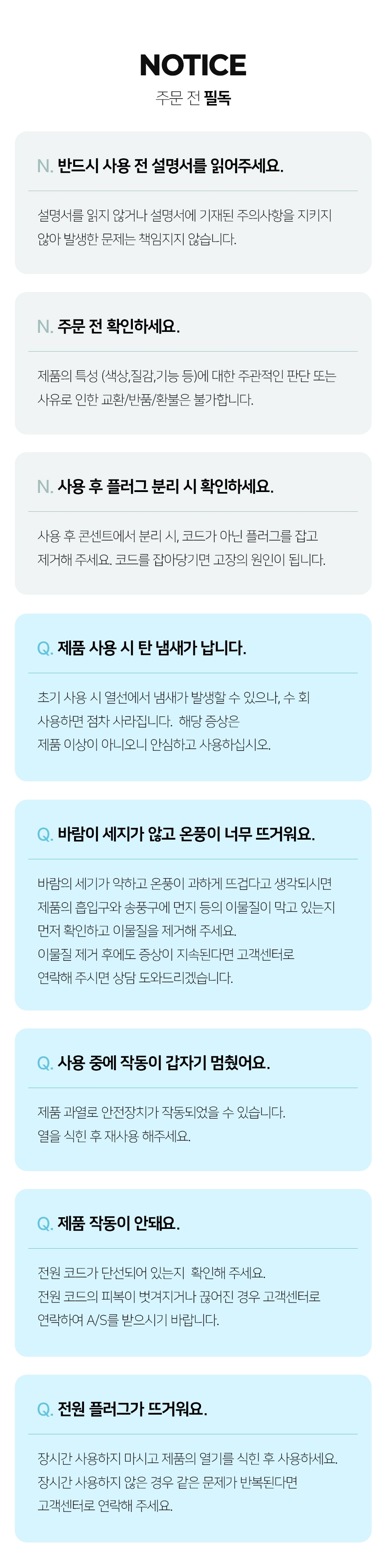 • 고객 변심으로 인한 교환, 반품의 경우 배송비는 구매자가 부담합니다.