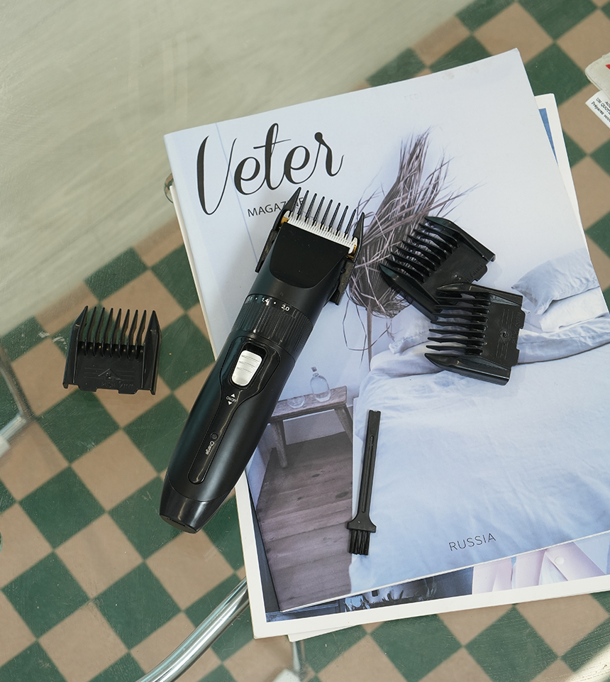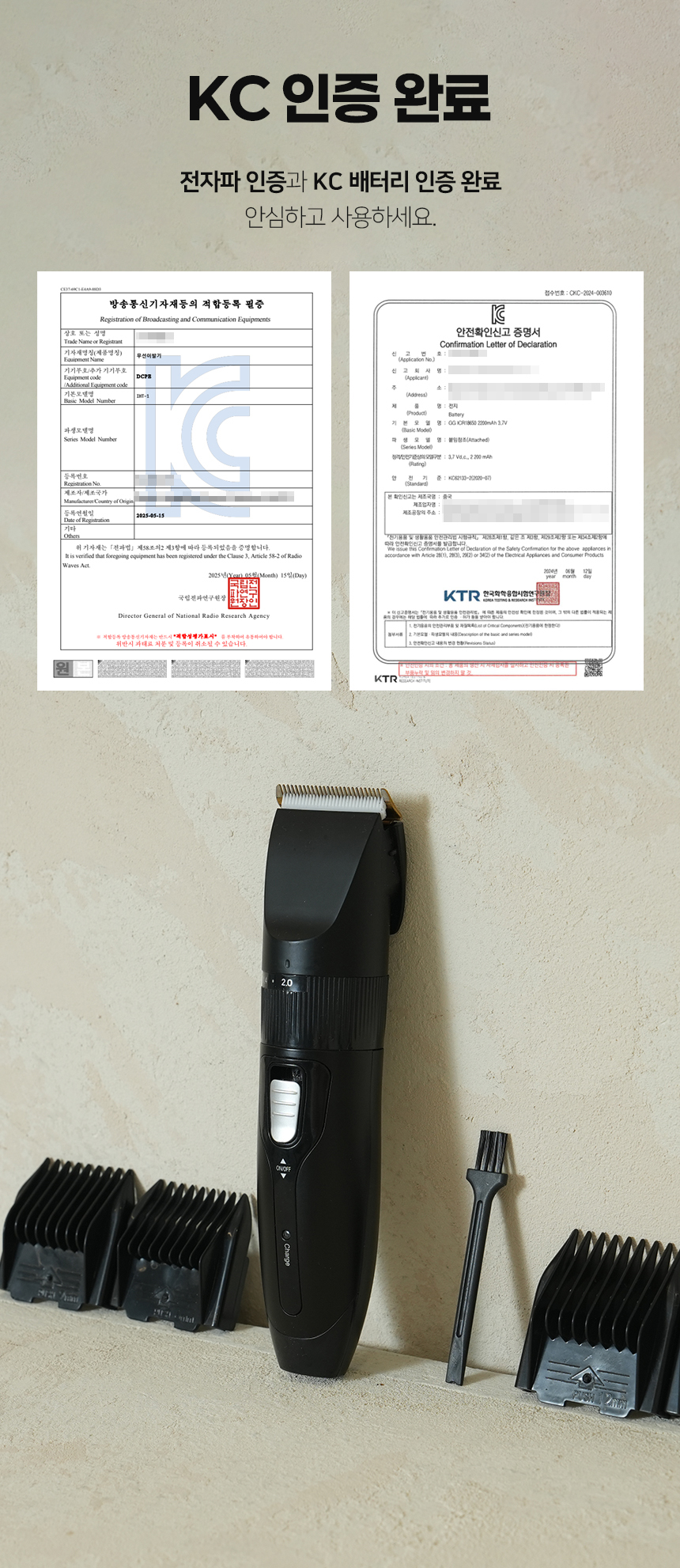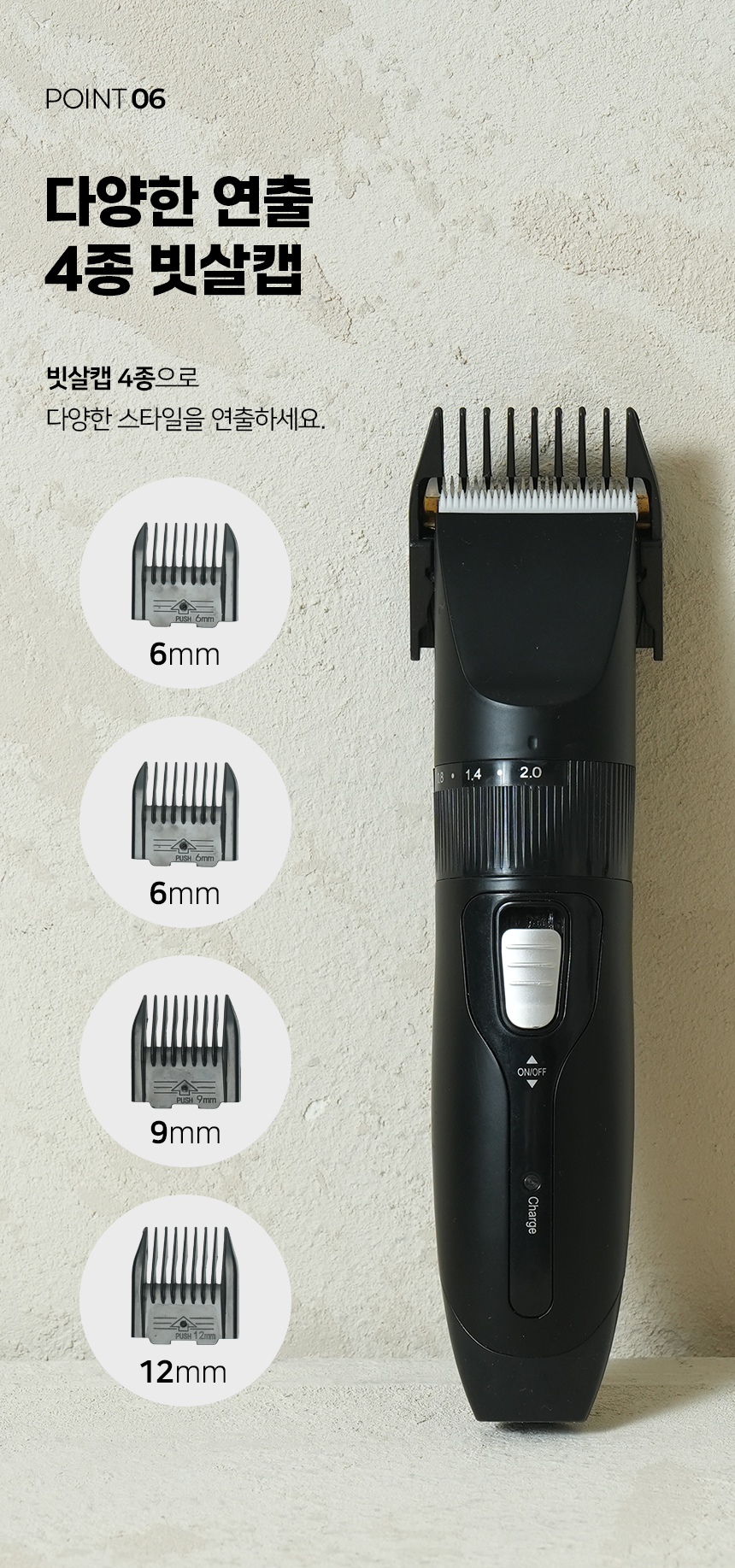 본품, 4종 빗살캡, 청소솔, 오일, 충전케이블, 사용설명서