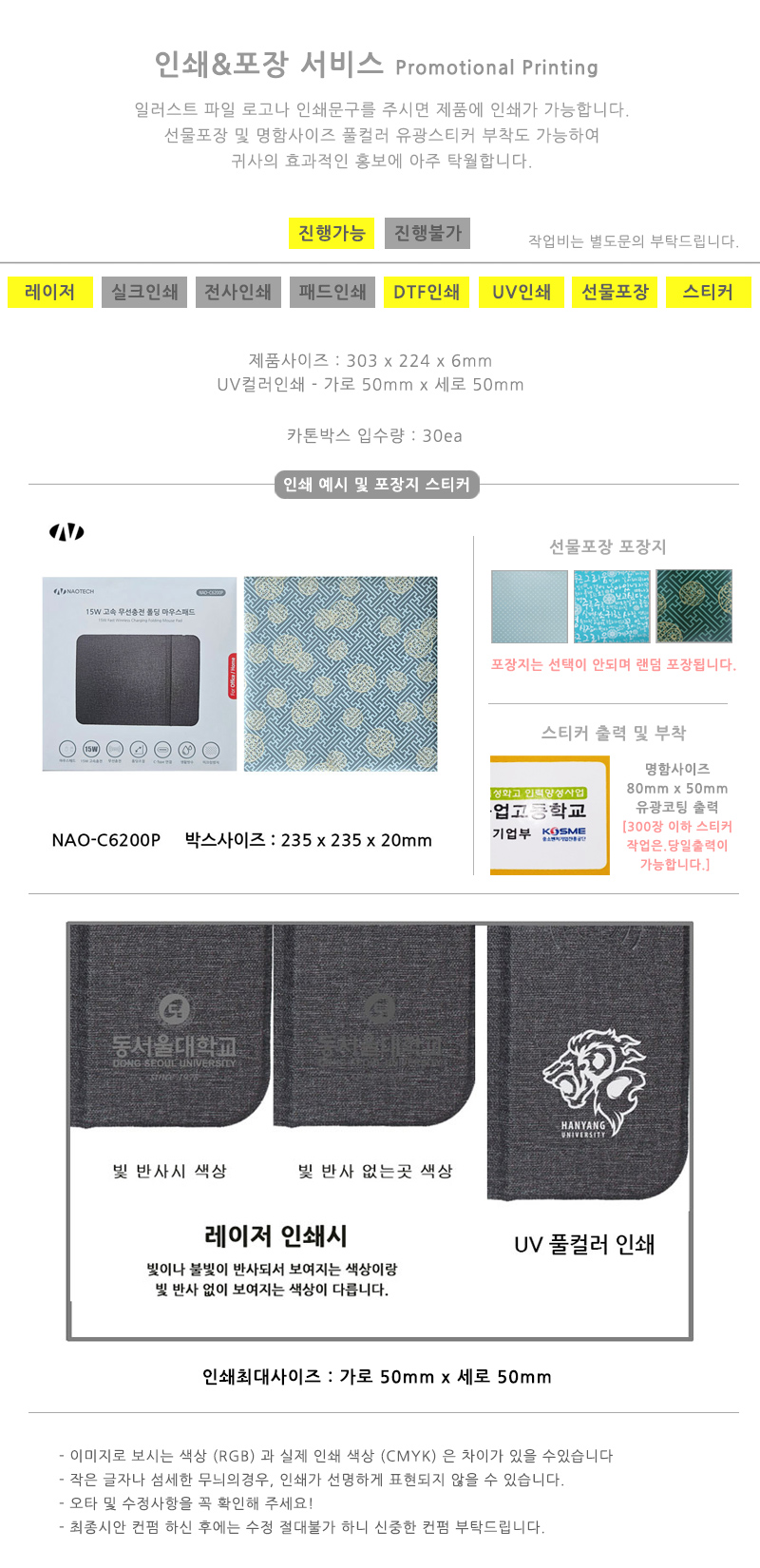 제품사이즈 : 303 x 224 x 6mm / 패드두께 : 3mm / 무게 187g