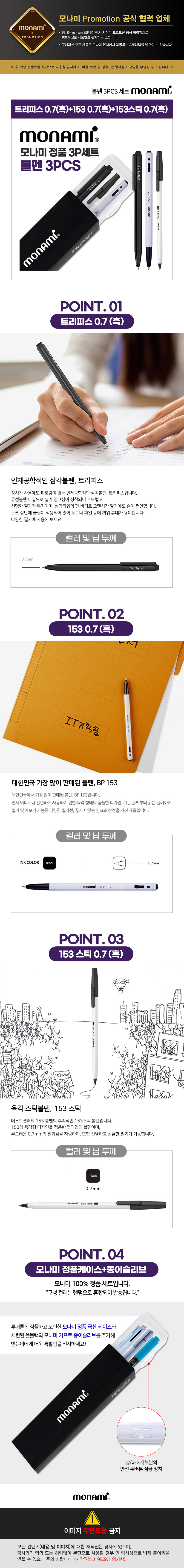 모나미 153스틱0.7(흑)+트리피스0.7(흑)+153볼펜0.7(흑)