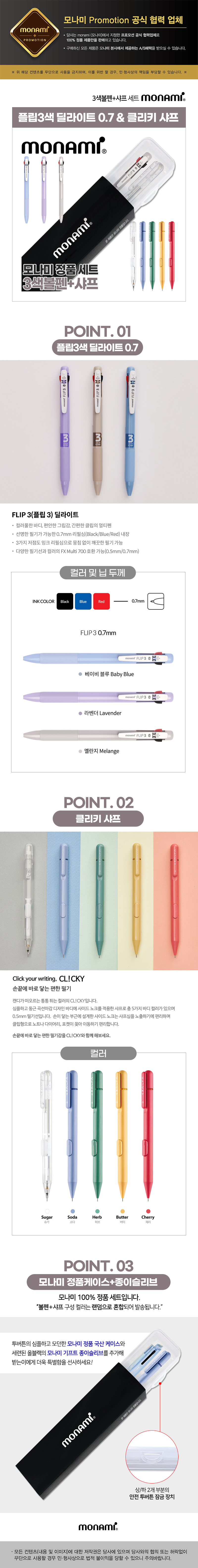 모나미 플립3색딜라이트0.7+클리키샤프0.5