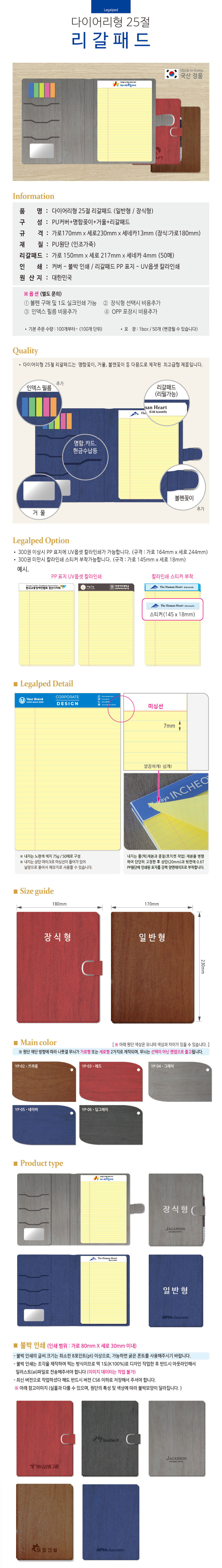 표지 불박인쇄1곳 포함 / 리갈패드, 볼펜 인쇄별도문의