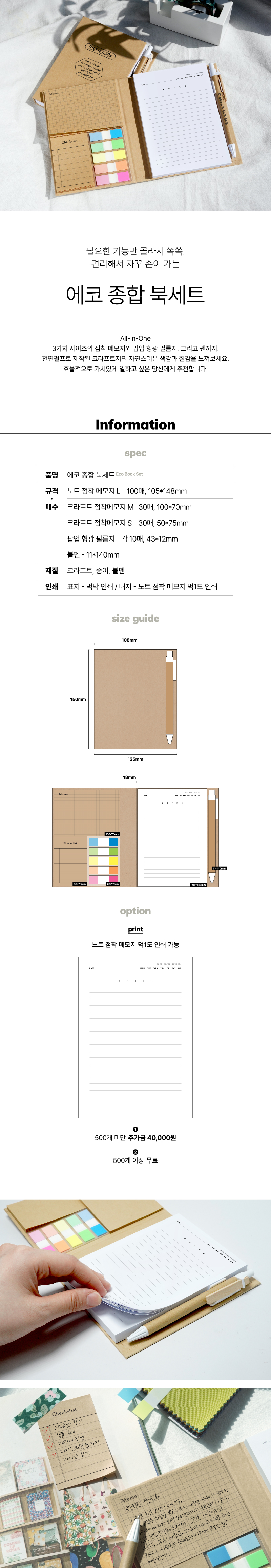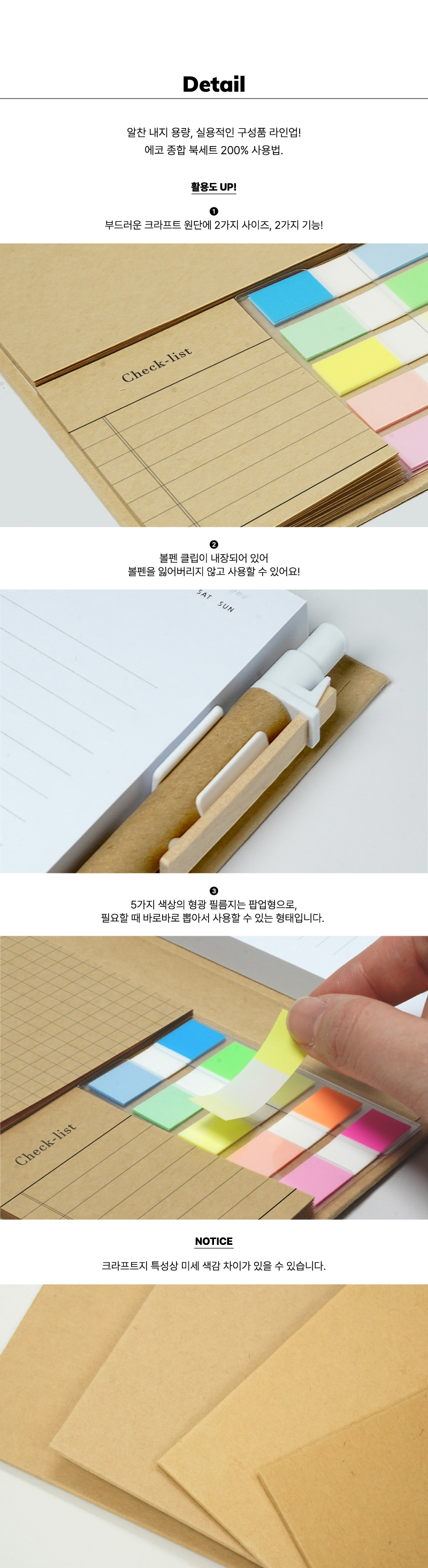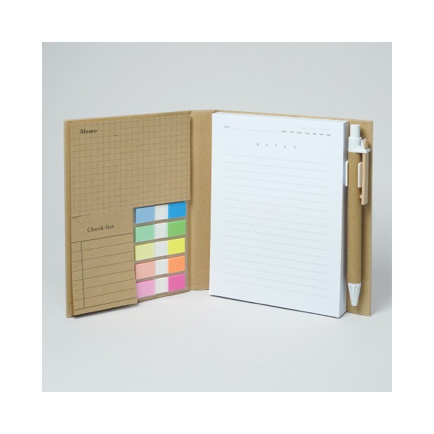 크라프트 하드커버 ,크라프트 점착메모지(각30매),노트점착메모지(100매),팝업형광필름지(10매),크라프트볼펜