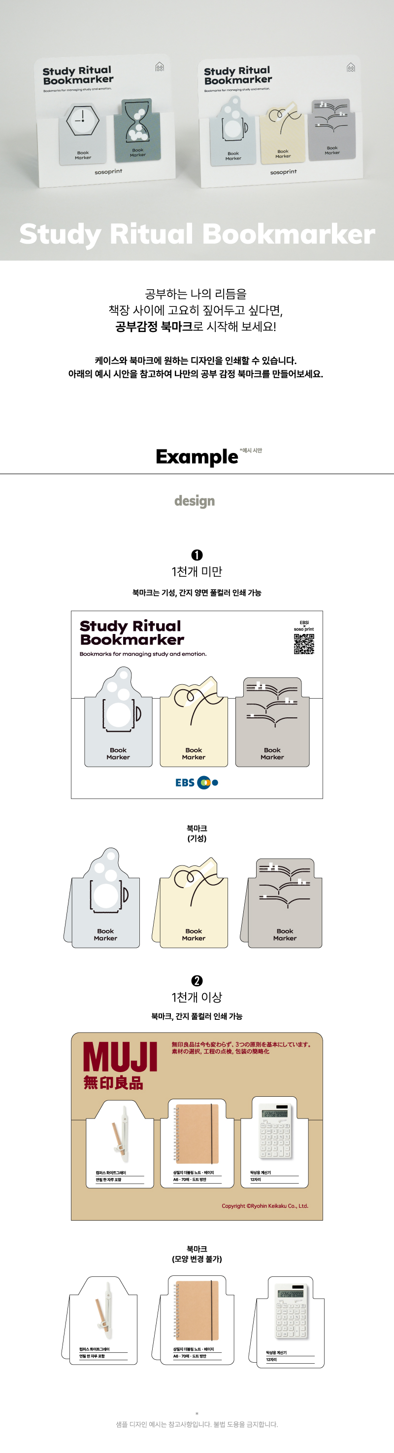 ※ 1,000개 미만 제작시 간지 풀컬러인쇄 + 북마크 기성으로 출고 됩니다.