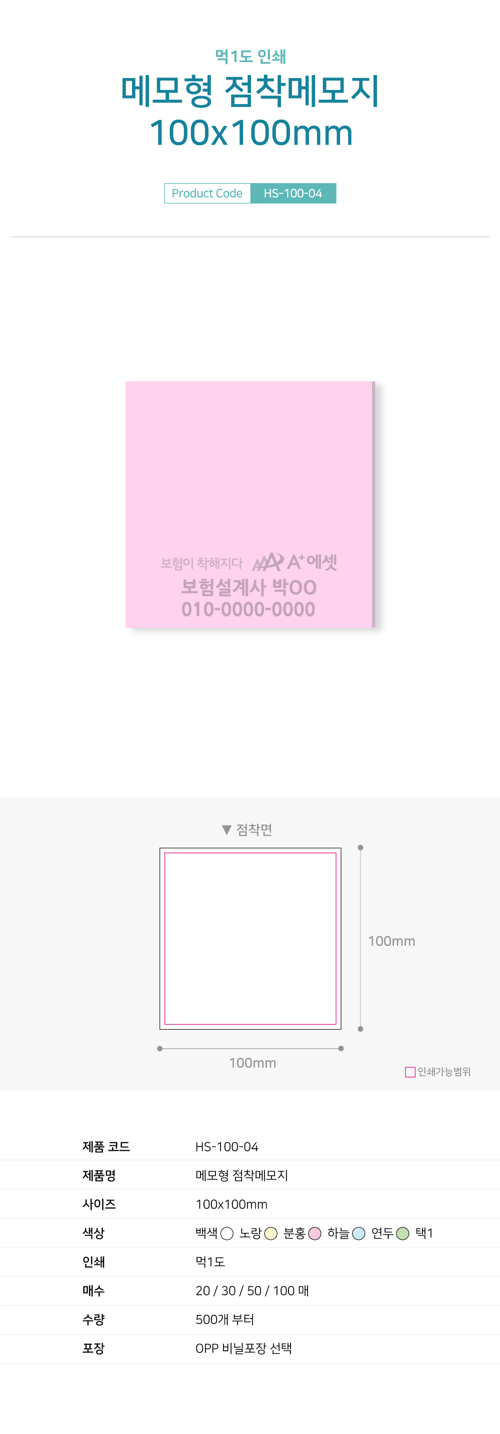 점착메모지 100x100mm 먹1도인쇄