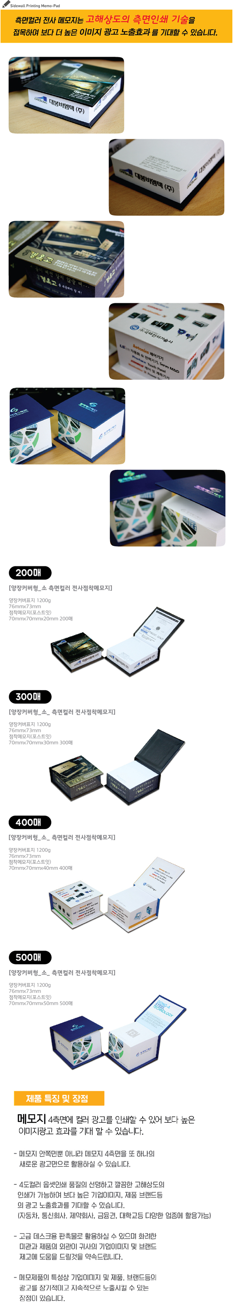 양장커버 76mm x 73mm x 40mm/포스트잇 70mm x 70m x 40mm, 400매 / 1200g하드보드지, 90g 유성점착원단(국산)