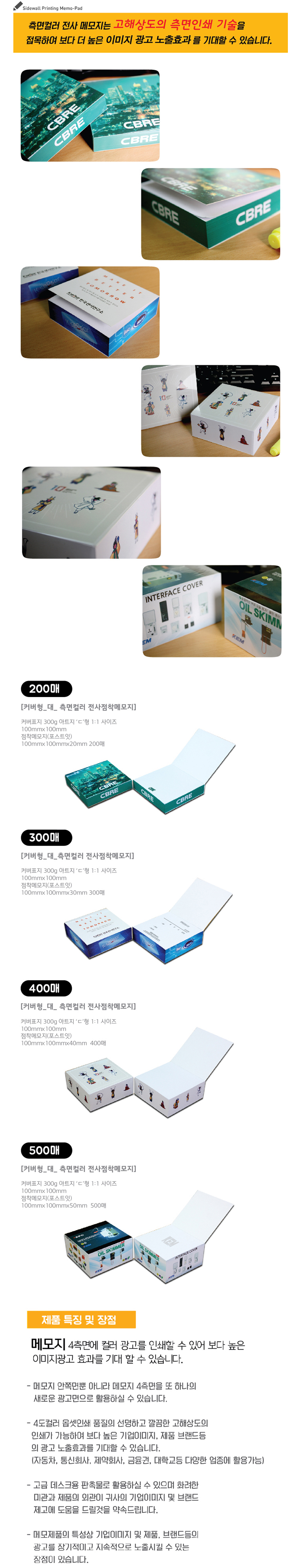100mm x 100mm x 30mm, 300매 / 포스트잇 90g 백상모조(국산유성점착원단), 표지 300g 아트지