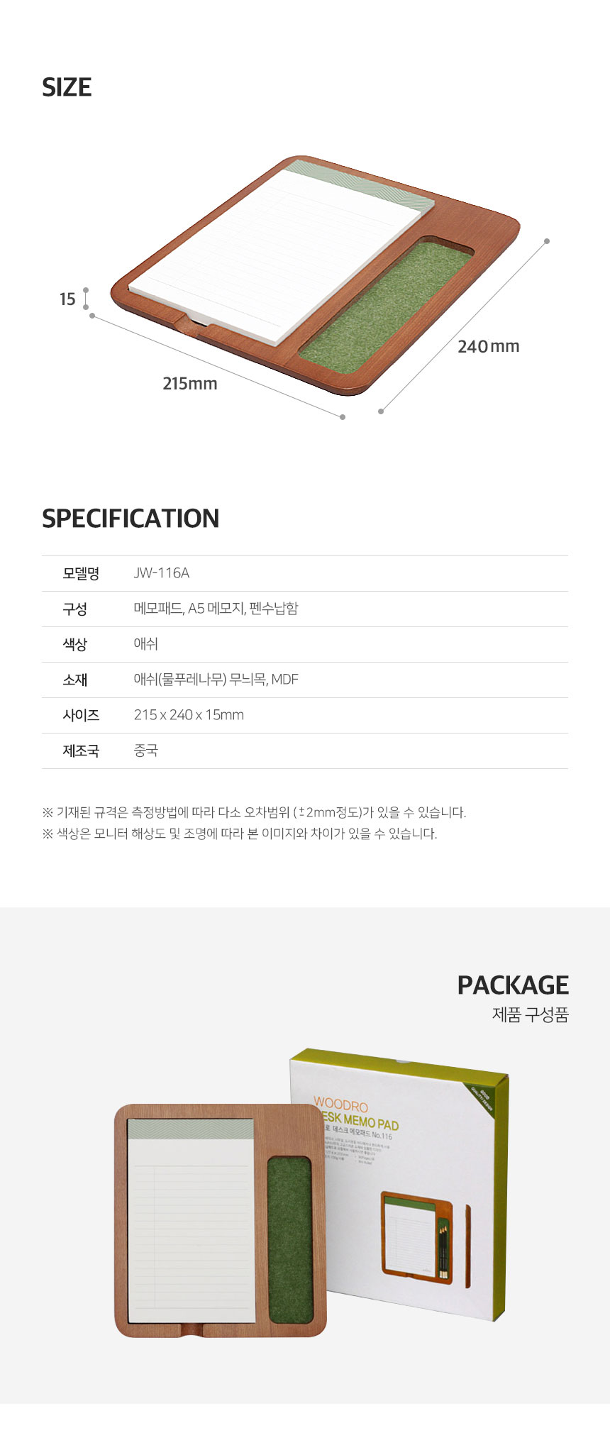 215*240*25mm / 애쉬무늬 MDF