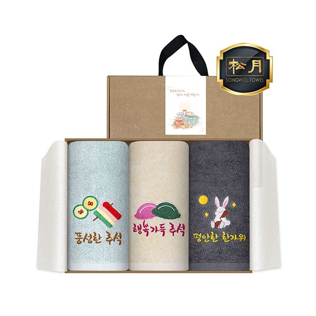 추석타월 + 3매손잡이 크라프트박스