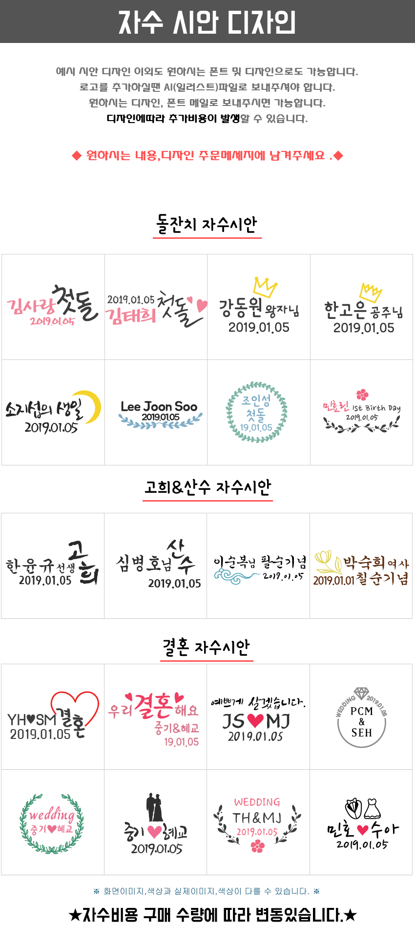 ※ 자수인쇄 디자인 난이도에 따라서 인쇄비 편차 발생 됩니다.