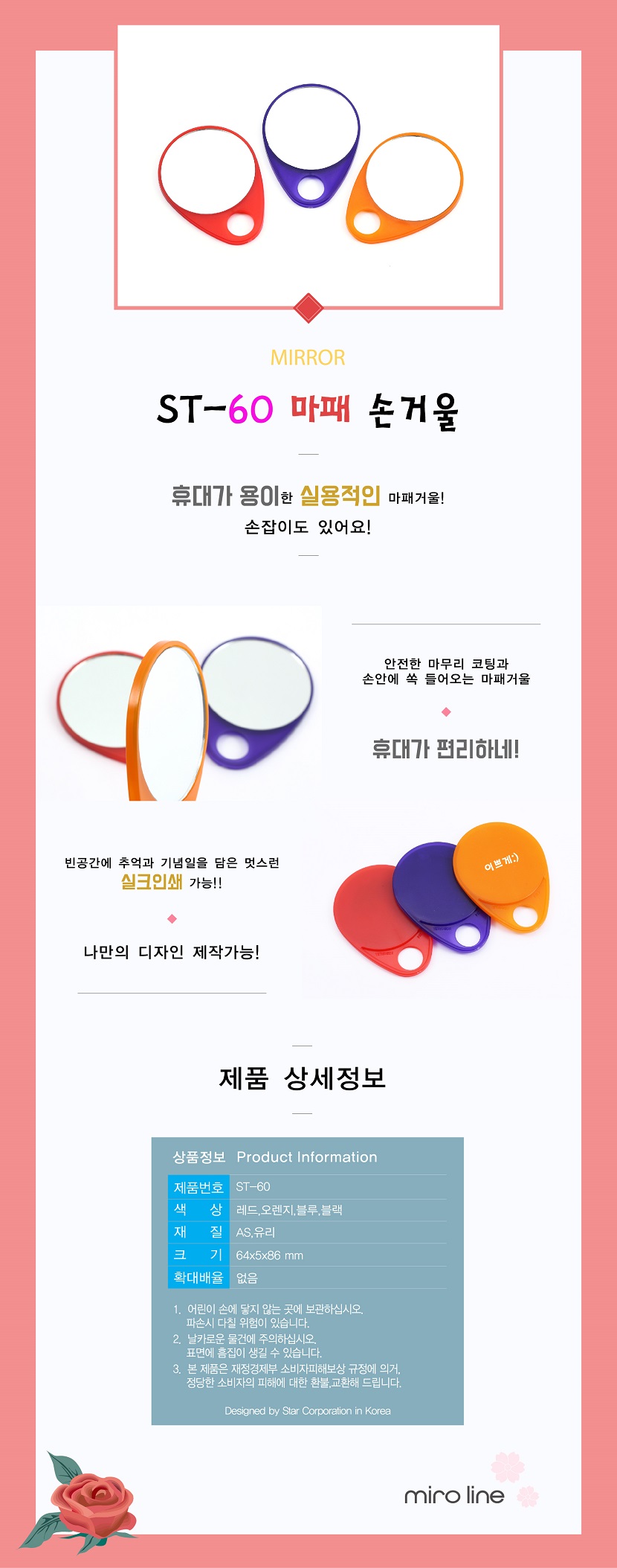 거울,케이스 / 적,오렌지,청,흑