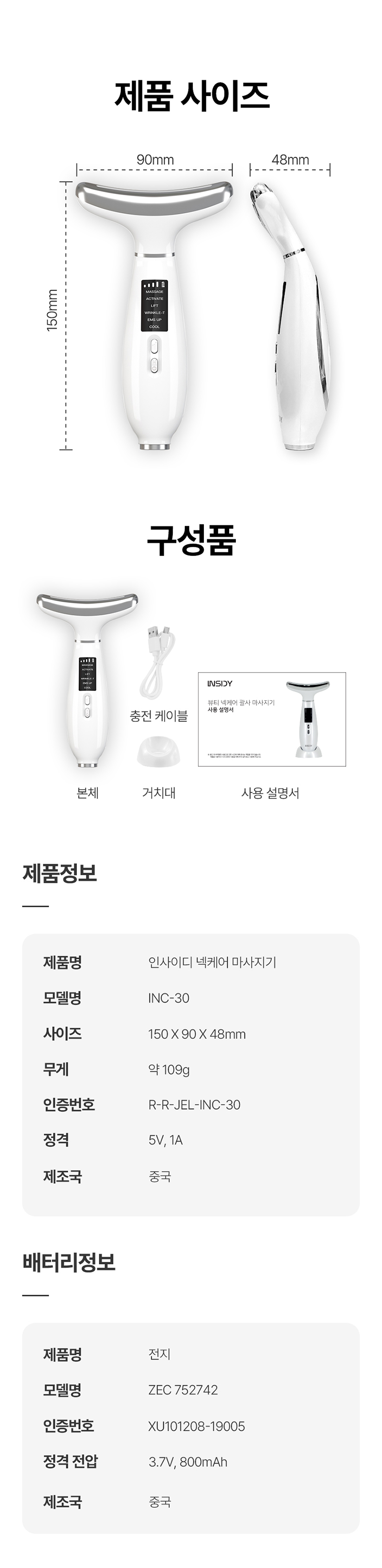 본품, 거치대, C-Type USB 충전 케이블, 사용설명서