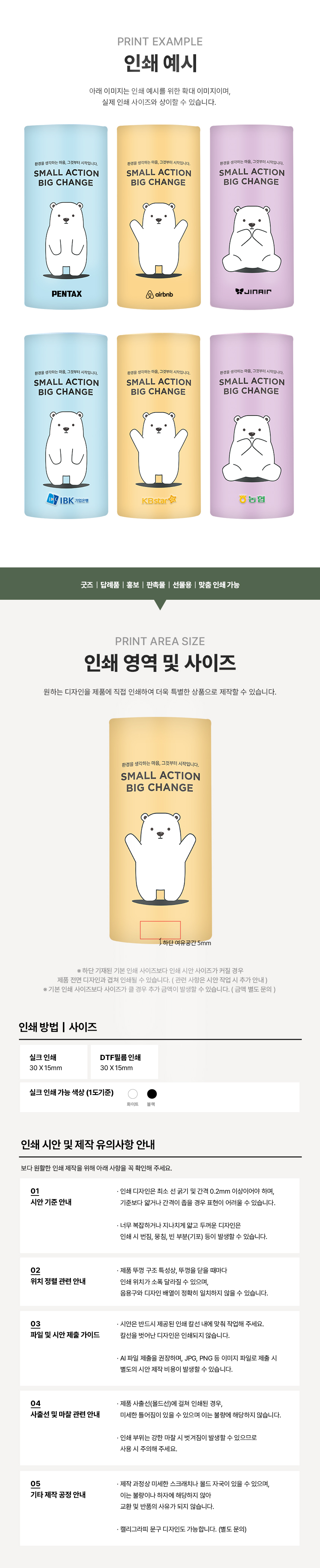 실크인쇄 / 컬러인쇄 / 레이저인쇄 / 박인쇄 / 자수인쇄 / 에폭시인쇄