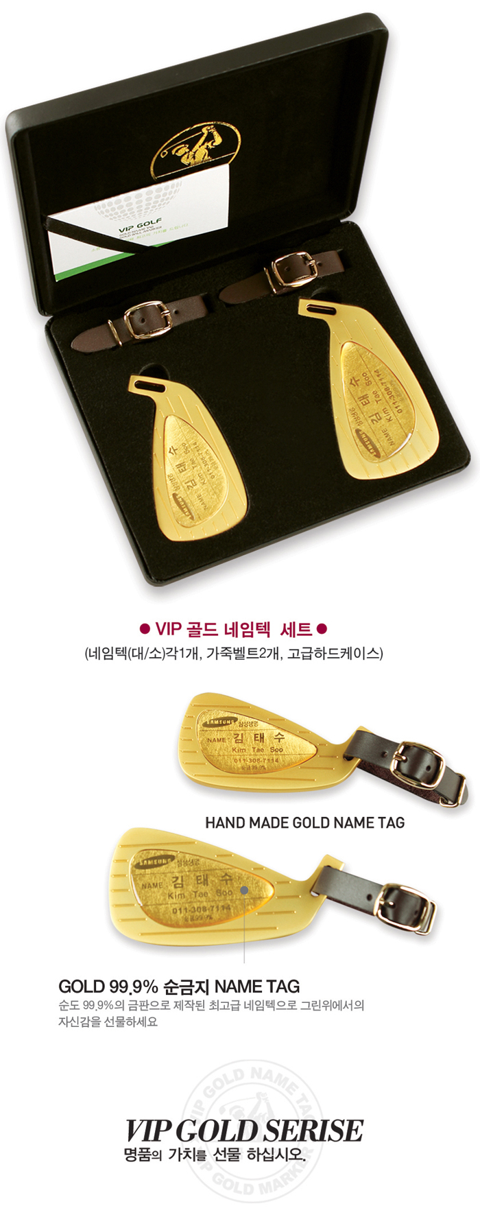 네임텍 2개(대 1P+소 1P), 가죽벨트 2개 / 골드