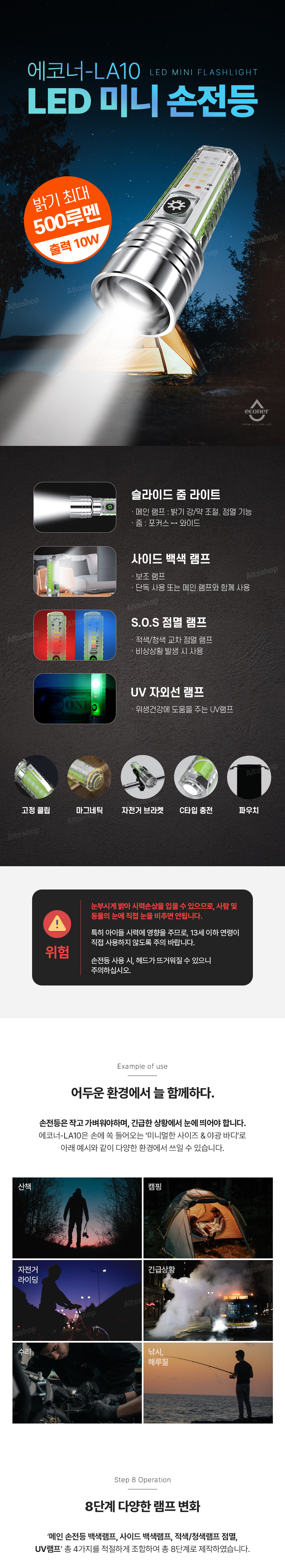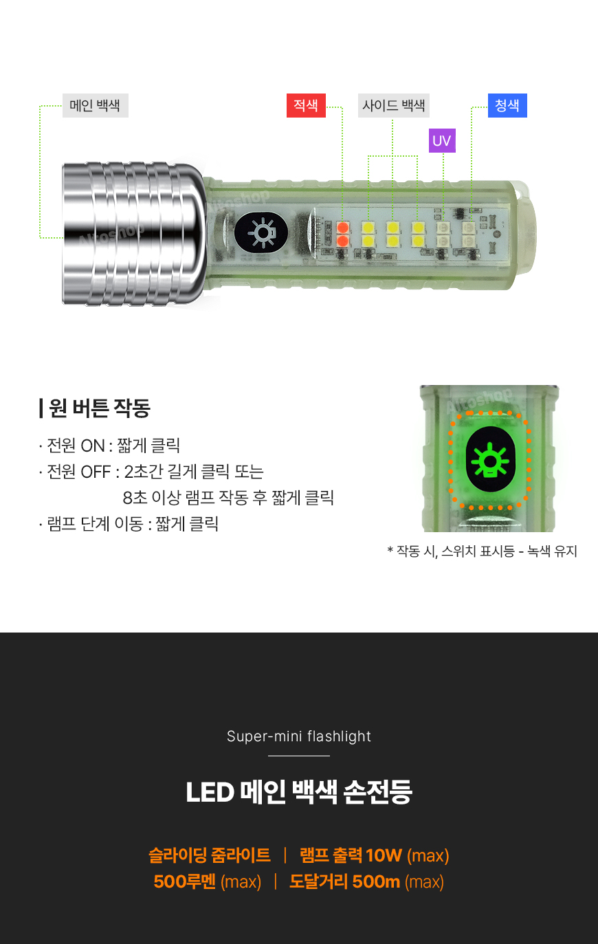 - 500루멘의 밝기로 환하게 사용하세요