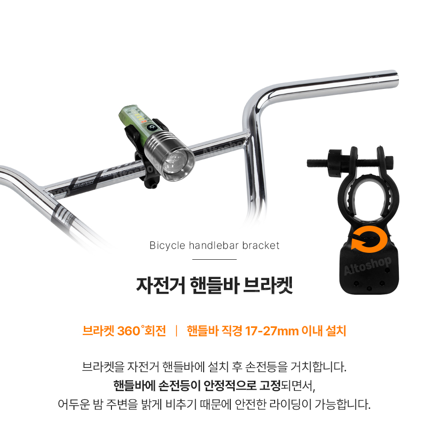- 동봉된 클립으로 옷깃,책등에 꽂아서 사용가능 , 동봉된 자전거 브라켓으로 자전거, 봉 등에 거치 가능합니다