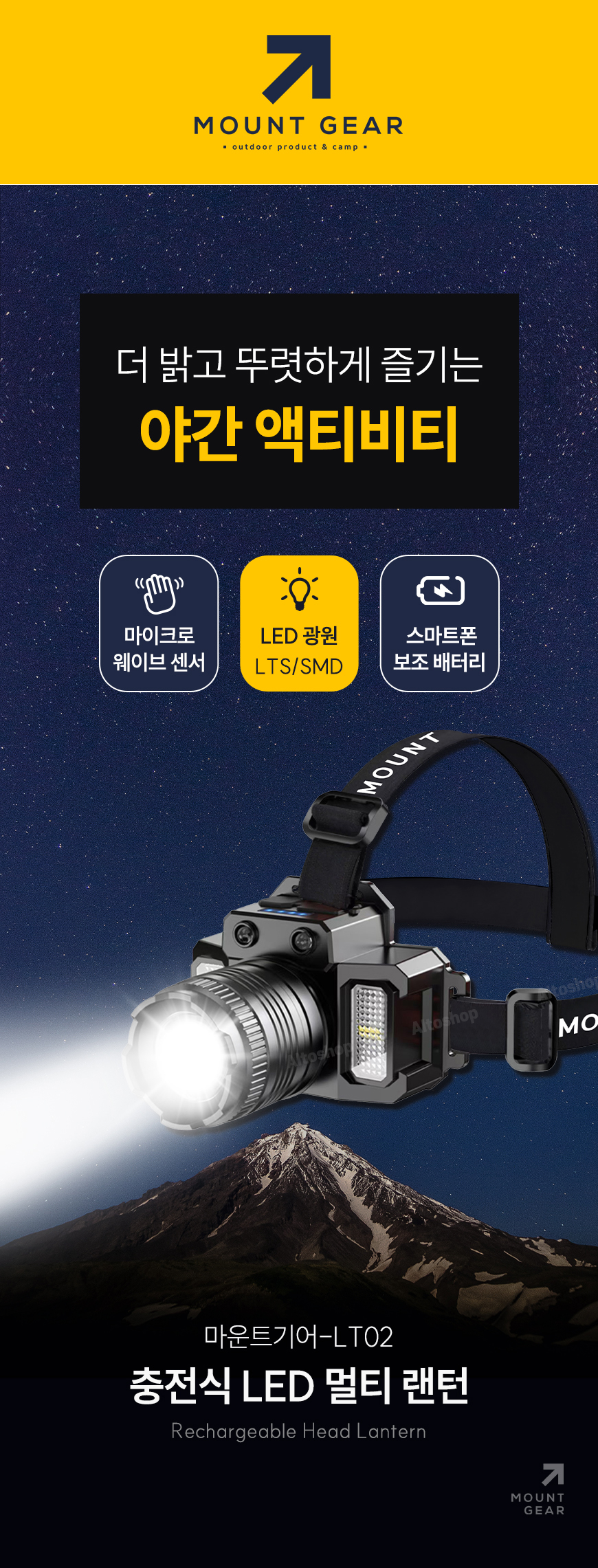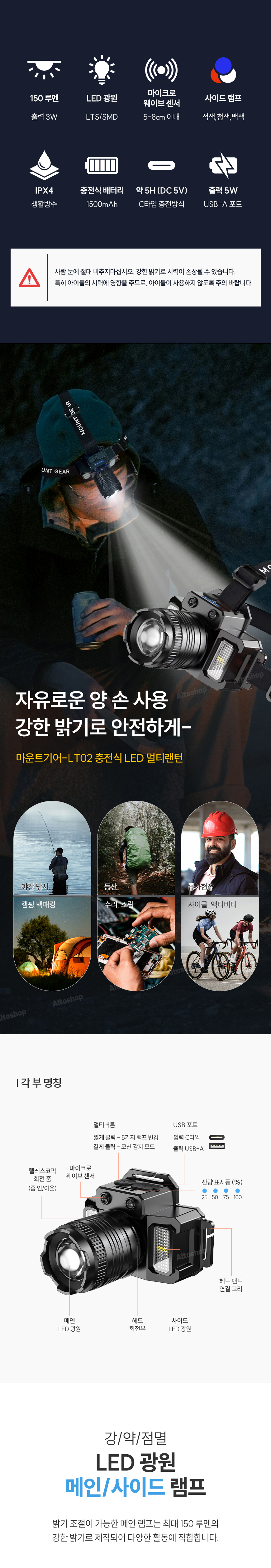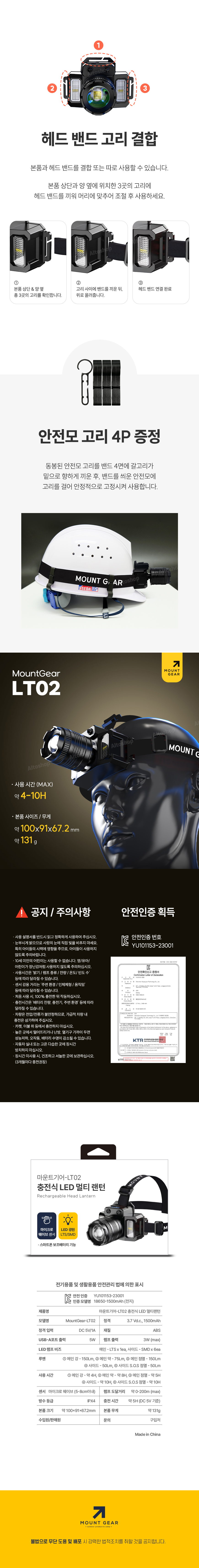 - 131g 의 깃털같은 무게의 머리에 부담을 주지않는 헤드랜턴
