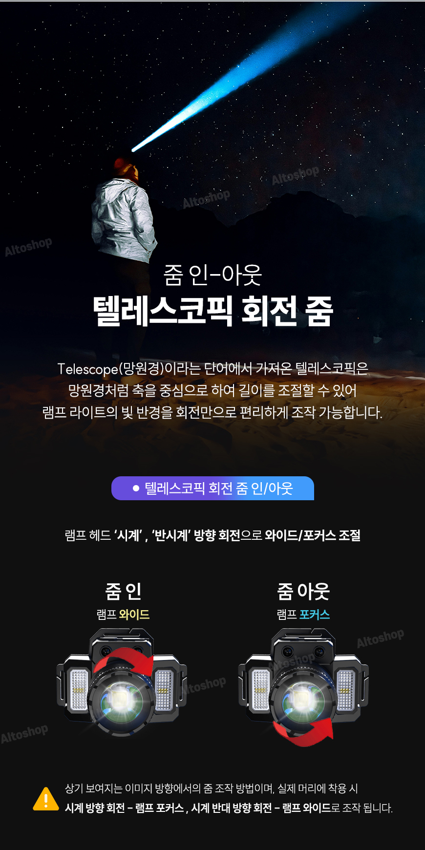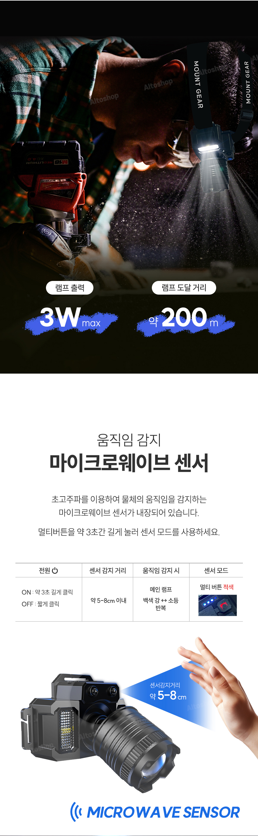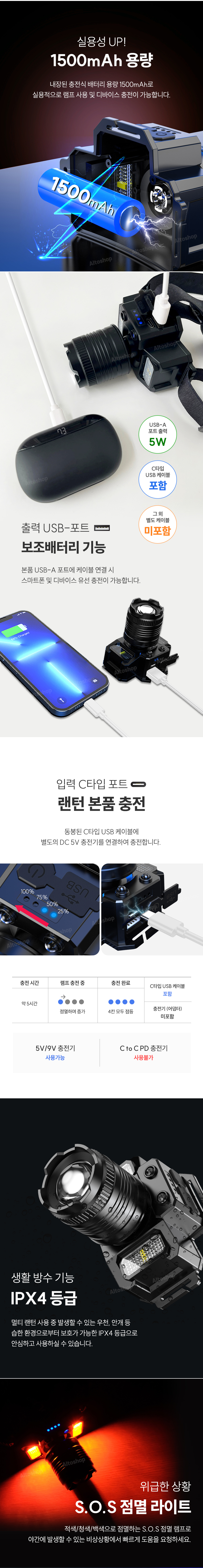- 가볍다고 기능을 빼진 않았습니다 : 줌/인 기능 , 마이크로센서 기능 , 잔량 표시등 , 사이드 LED 광원, SOS 가능까지