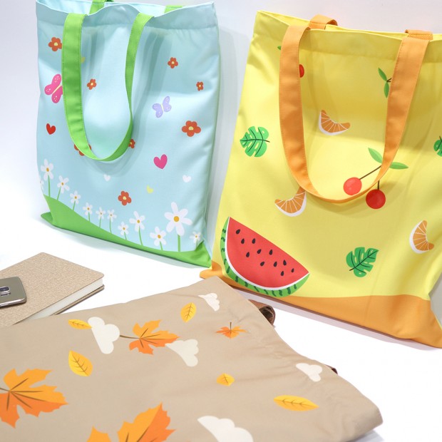 가방끈은 인쇄물을 가공하여 끈형태로 가공하여 별도 컬러칩이 없이 원하는