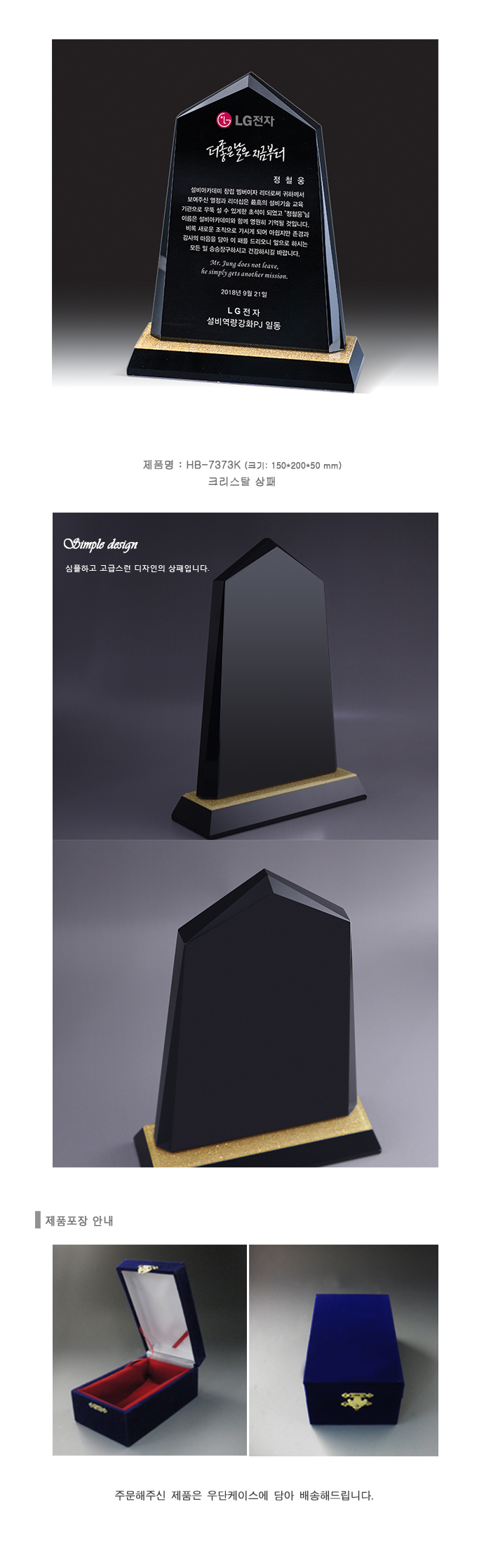 심플한 디자인의 크리스탈 상패