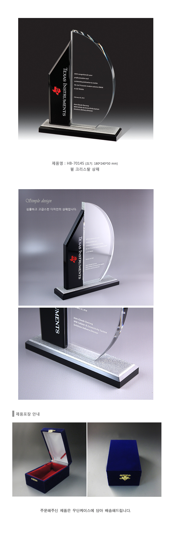 심플한 디자인의 크리스탈 상패
