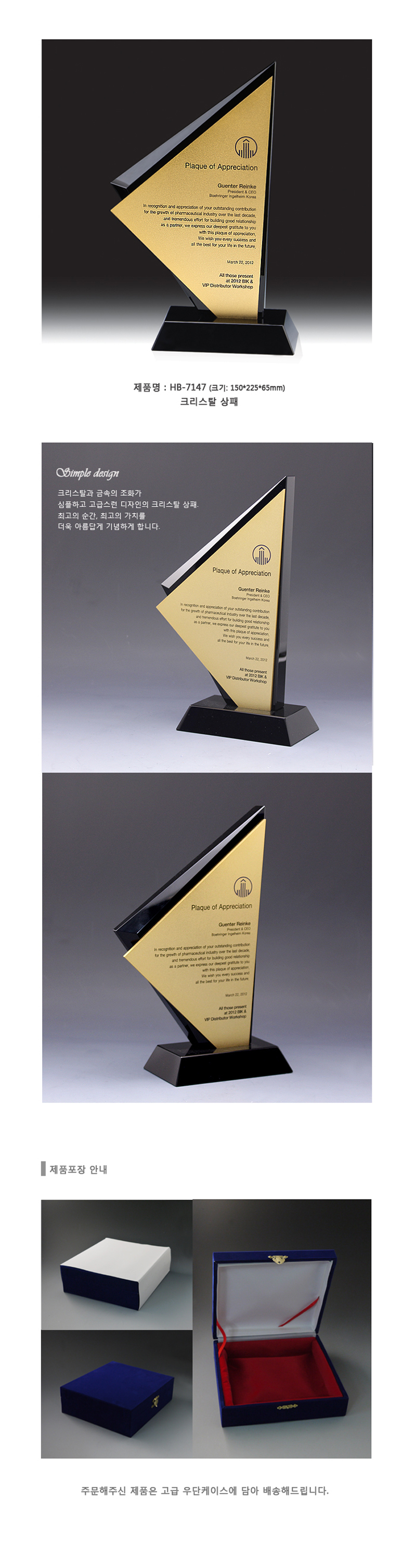 심플한 디자인의 크리스탈 상패