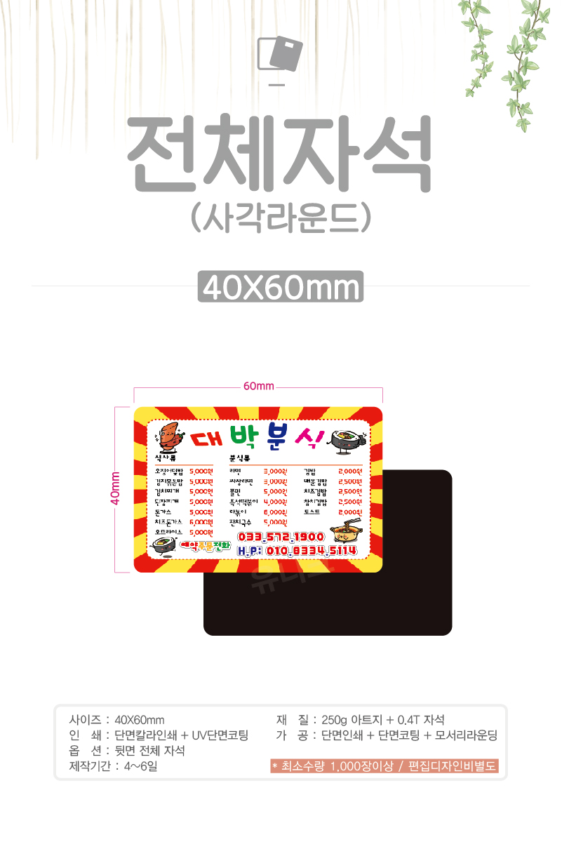 40*60mm / 250g 아트지+0.4T자석
