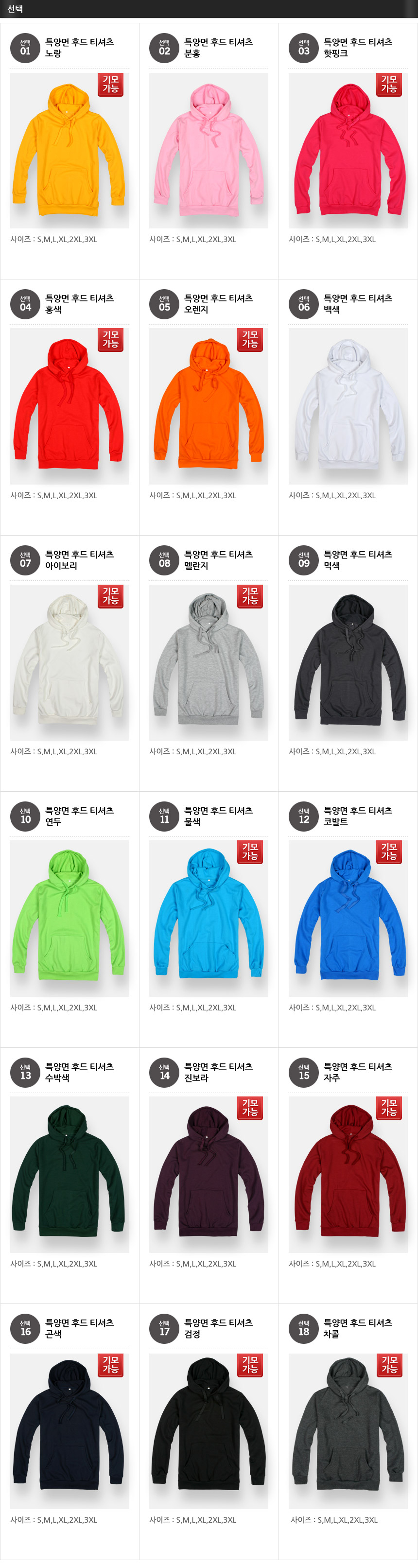 S,M,L,*L,2*L,3*L / 특양면