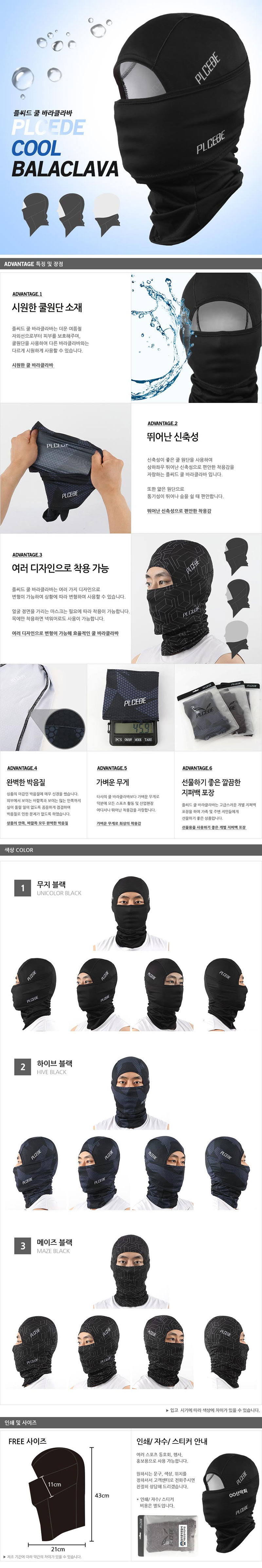 쿨 바라클라바+지퍼백포장 / 무지블랙,하이브블랙,메이즈블랙