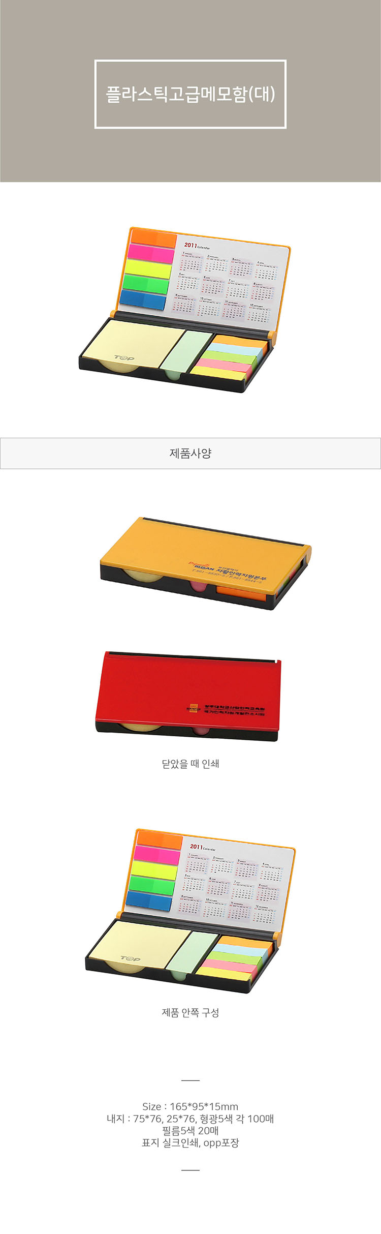 점착메모 70*75, 25*75, 5색지 각 100매 / 노랑,빨강