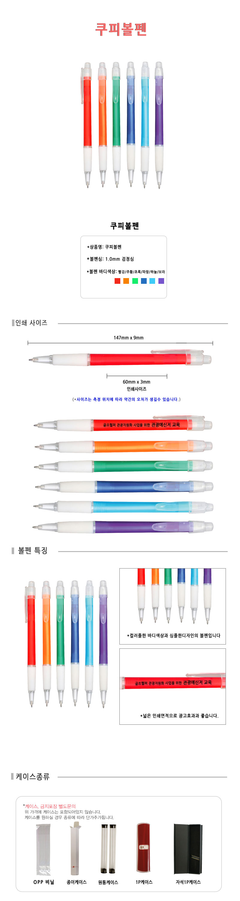 볼펜1P / 빨강/주황/초록/파랑/하늘/보라