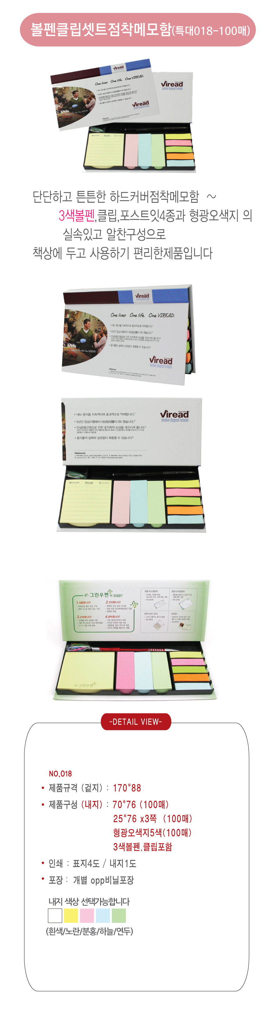 겉지:170*88 , 내지:70*76(100매) , 25*76 x3쪽(100매) , 형광오색지5색 (100매)