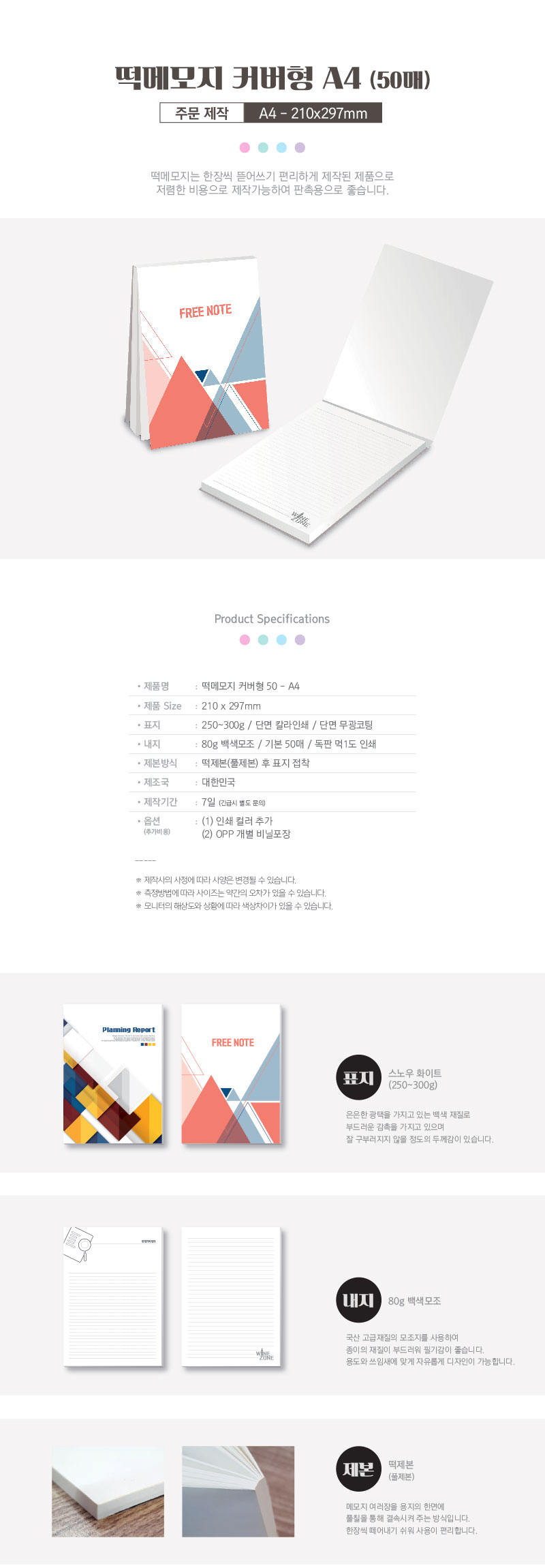 (1) 사이즈 : 210*297mm / 1부당 내지 50매