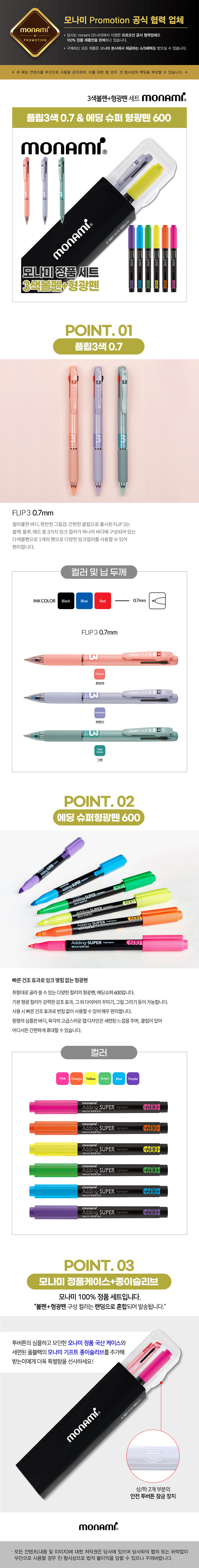 모나미플립3색(0.7)+에딩슈퍼형광펜600세트
