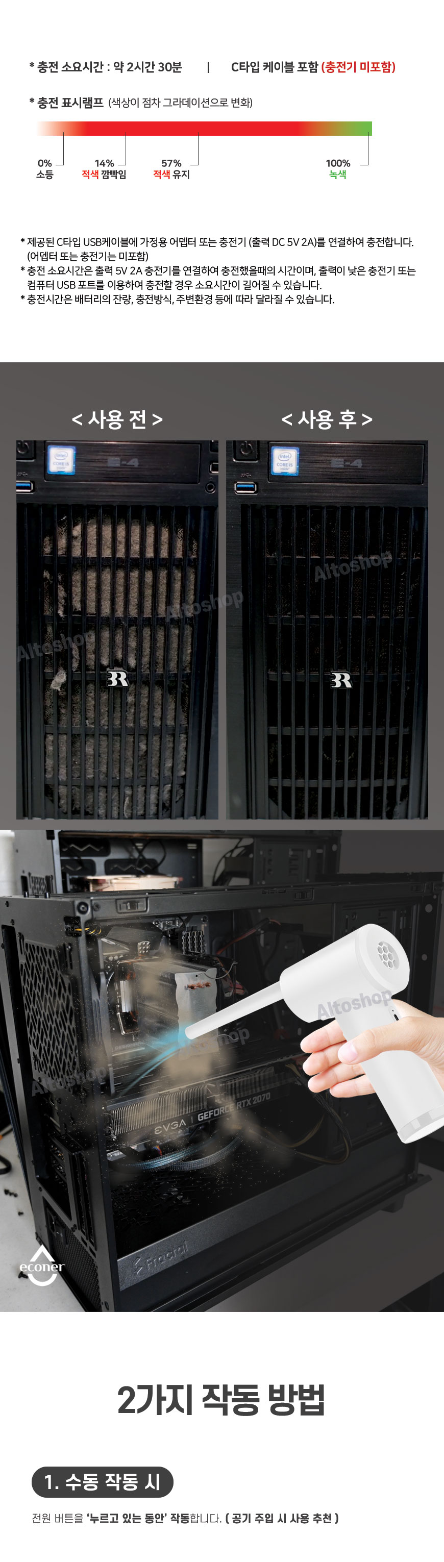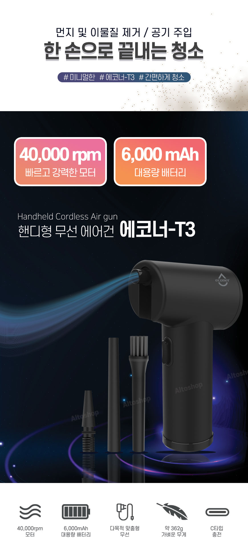 제품 사이즈 : 크기 약 58*96*170mm / 무게 약 362g / 재질 : ABS[본품], PC[노즐]