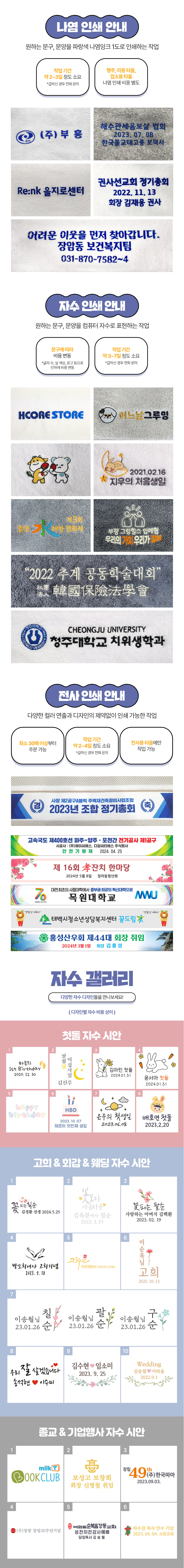 ※ 자수인쇄 별도문의(크기,난이도,글자수 등의 요소로 비용변동 있을 수 있습니다)