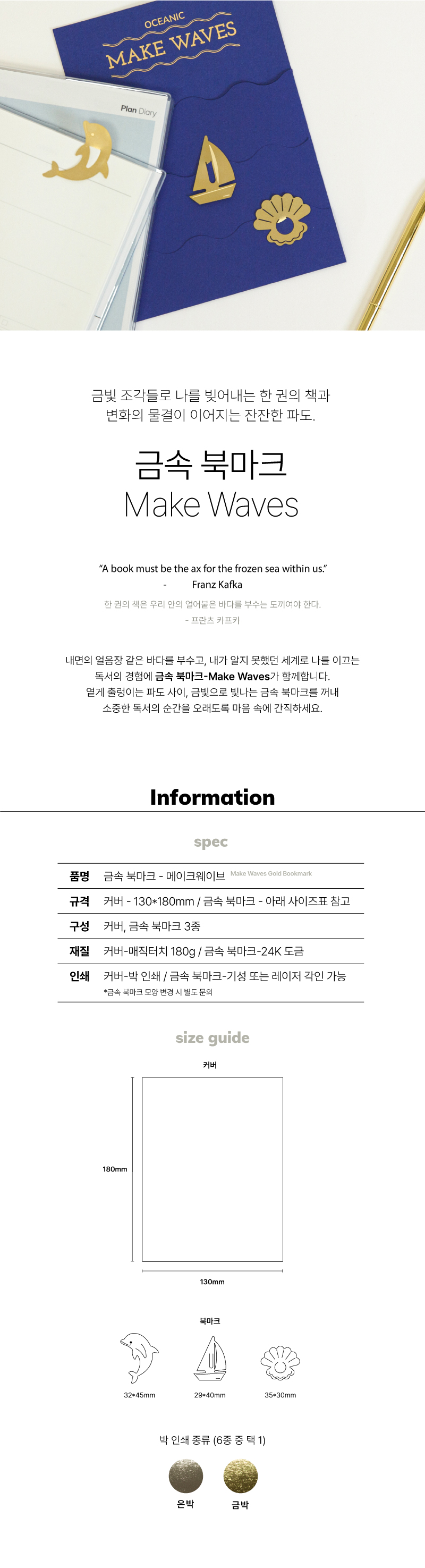 ※인쇄 : 커버-상단 박인쇄 + 금속 북마크-각각 레이저 각인