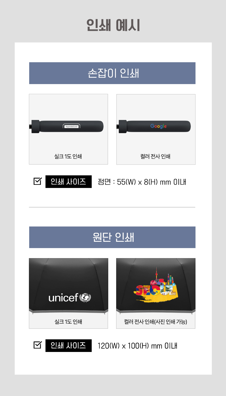 실크인쇄 / 컬러인쇄 / 레이저인쇄 / 박인쇄 / 자수인쇄 / 에폭시인쇄
