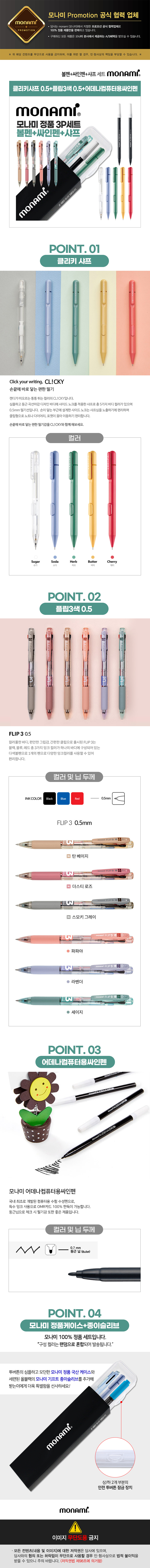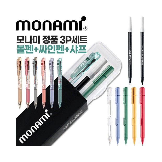 모나미 플립3색0.5+클리키샤프0.5+어데나컴퓨터용싸인펜