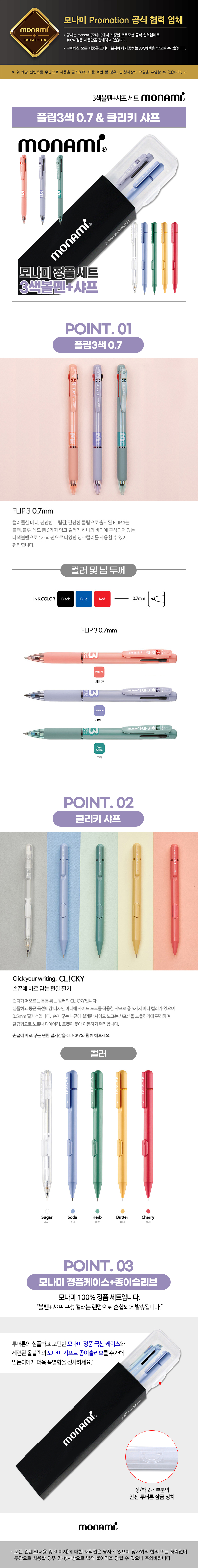 모나미 플립3색0.7+클리키샤프0.5