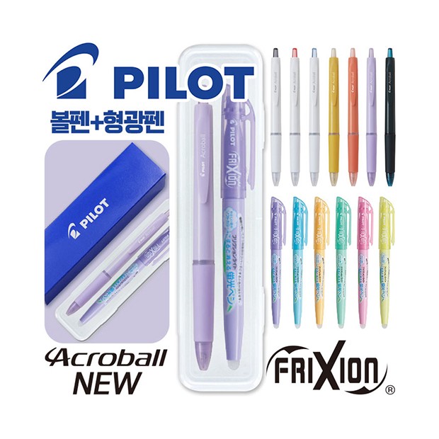 파이롯트 뉴아크로볼볼펜0.5+지워지는프릭션라이트소프트형광펜