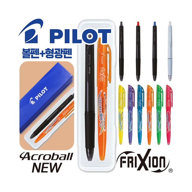 파이롯트 뉴아크로볼볼펜0.7+지워지는프릭션라이트형광펜