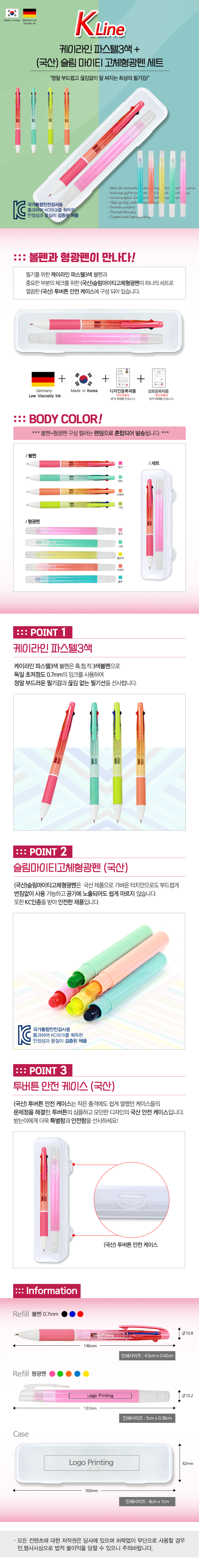 케이라인파스텔3색+슬림마이티고체형광펜