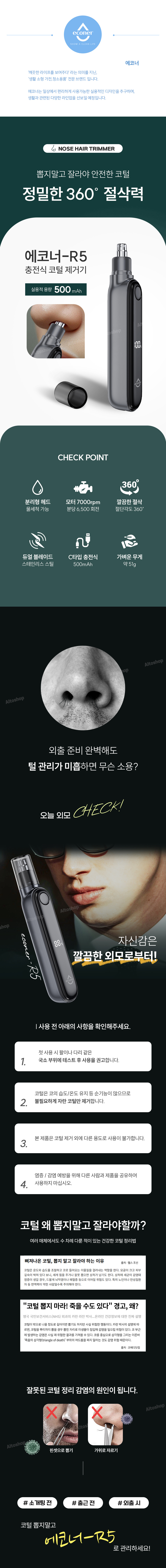 - 안전하고 정확하게 코털을 제거한다. 에코너 코털제거기